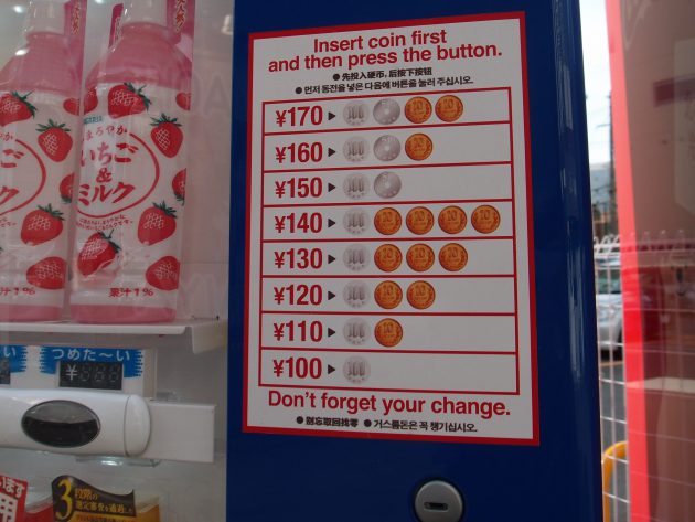 ▲自動販売機には、分かりやすいように金額に合わせた小銭のイラストを表示