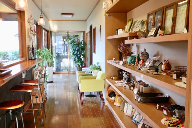 ▲インテリアもかわいいカフェには、猫グッズも多く揃えられている