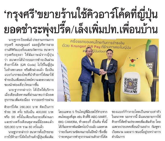 ▲多慶屋がタイのQRコード(Krungsri QR Pay)決済導入を伝える現地報道