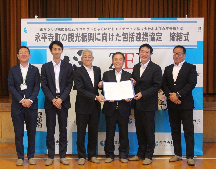 加藤:持続可能な取り組みが一つの形として評価されたことで、町全体としても、より明確な枠組みのもとで進めていく必要性を感じました。そこで、永平寺町における観光振興と持続可能な地域づくりを一層推進することを目的として、永平寺町役場、地域のまちづくり企業である株式会社ZENコネクト、そして当社の三者で、2025年10月に連携協定を締結しました。