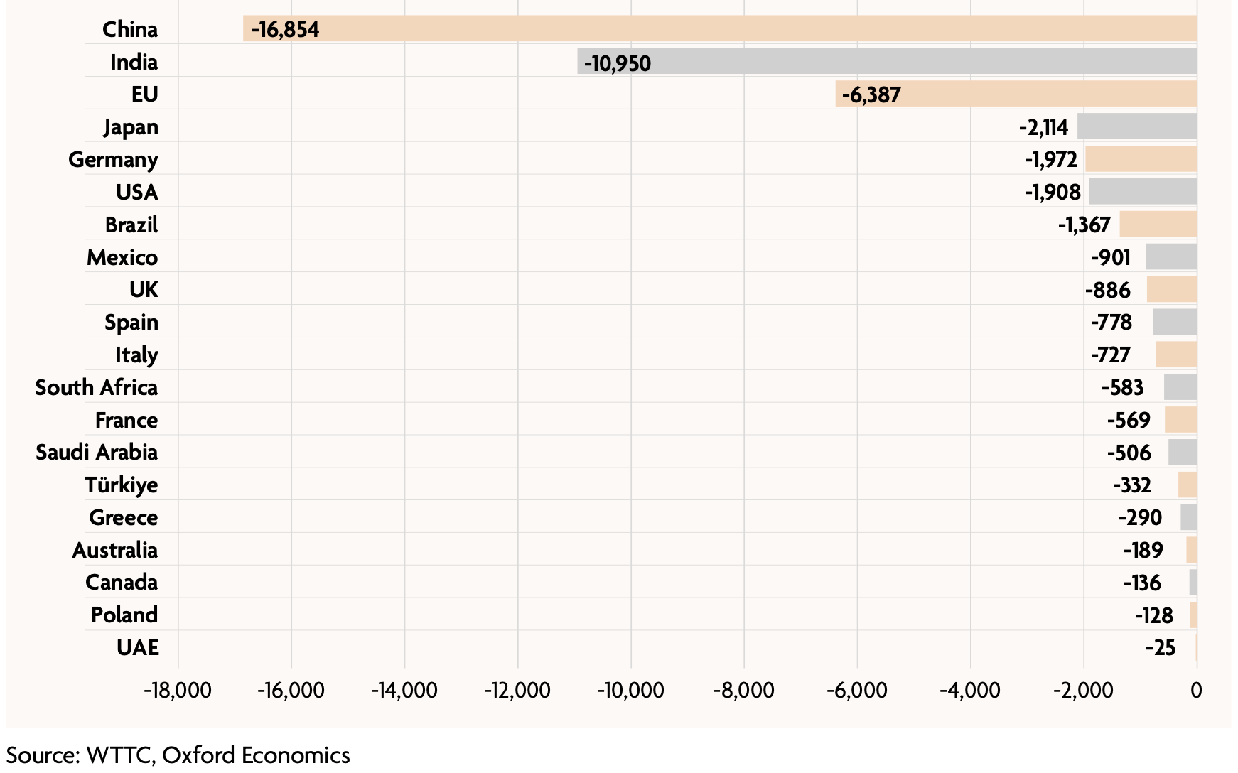 ▶︎2035年に不足する観光・旅行業界の労働者数(国別)