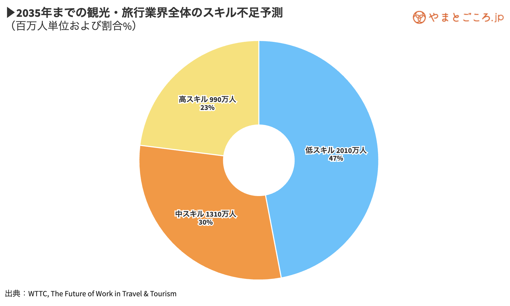 やまとごころ編集部世界旅行ツーリズム協議会(WTTC)は第25回世界サミットで、2035年に観光・旅行業界で4300万人超の人材が不足する恐れがあるとの報告書を発表した。